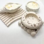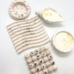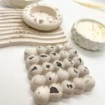 2 Padėkliukai, 2 sojų žvakės – žvakidės. Žvakidė įstatomai žvakei.